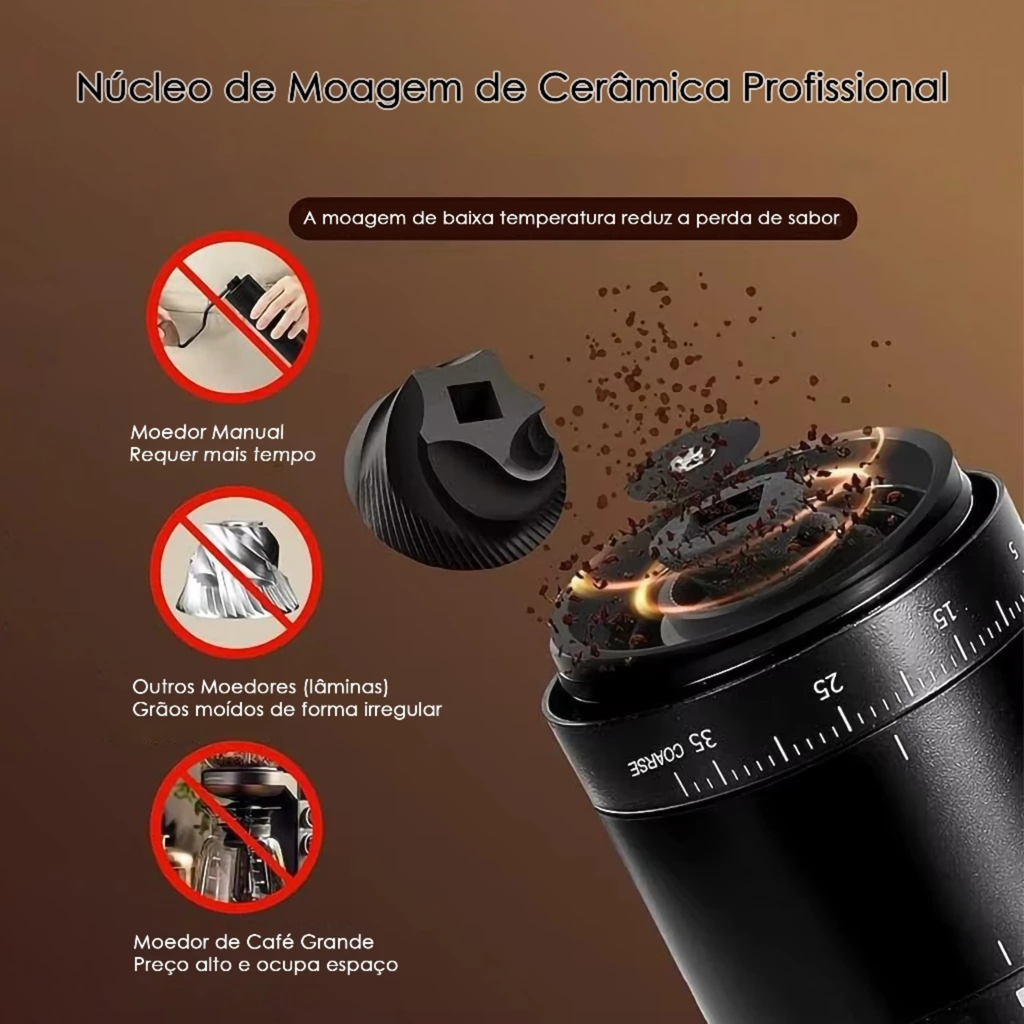 Com o Moedor de Café Automático, você transforma seu café comum em uma experiência completa — com sabor, aroma e qualidade de cafeteria, direto da sua casa.